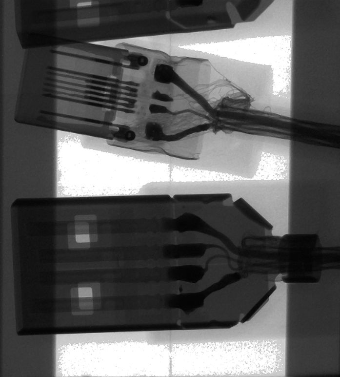 附图:USB数据线连接头在X光检查下的效果图片: