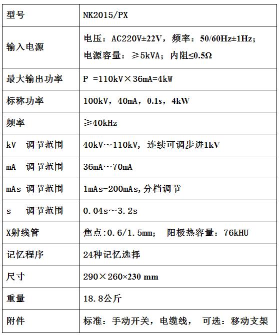 抢险救灾条件下X线摄影不同于在放射科的照相室进行X线摄影,它对放射技术人员要求较高,因为伤员病情较重,不易搬动,有些甚至要就地拍摄。 如果拍片失败而需要反复重拍的话,会给临床医生和患者带来很大的麻烦,可能会延误病情。便携式数字x光机 般输出功率在 50 mA 以下,属于小型X光机,可使用 般公共交流电源。开机前 定要检测输入电压是否位于工作电压范围。