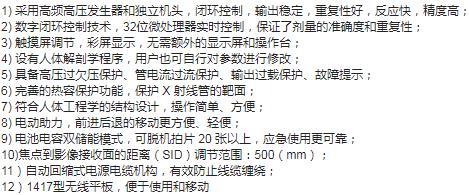 移动DR是在CR基础上发展而来,是常规X线摄影的大飞跃,比普通X线摄影曝光宽容度大,具有强大的图像处理功能,动态范围广,信息量多。移动DR和传统X线摄影比较检查时间减少了 半,移动DR能有效地缩短病人检查和获得报告时间,从而改善了医疗服务质量。