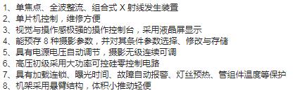 我公司生产的100mA工频移动X射线机是移动床边X射线机。它采用全波整流X射线机头,框架采用悬臂结构和电动束光器,可以方便,准确地控制X射线辐射野。整机体积小,便于携带,易于操作,安全可靠,可用于病房或手术室中各种医院和诊所的X射线照相。